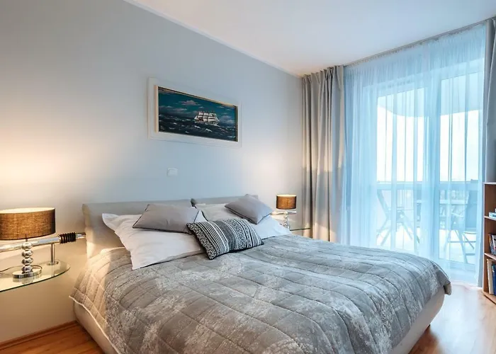 Apartament Morski Kołobrzeg, di 42 m^2, vanta strutture termali, tra cui una sauna, e si trova nel quartiere Dzielnica Uzdrowiskowa, a 550 metri da Muzeum Figur Woskowych Kolobrzeg. Gli ospiti dell'appartamento possono godere della comodità di accedere a un centro benessere.